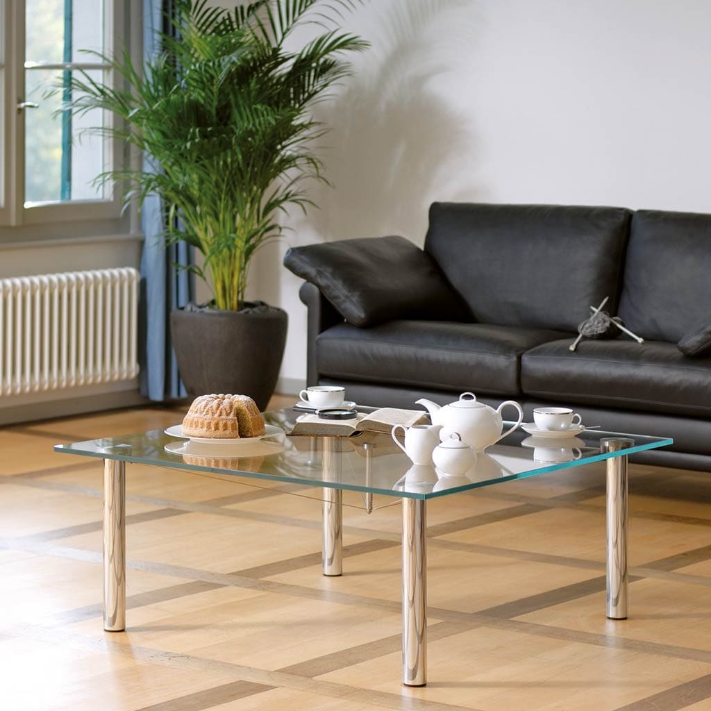Bei der Materialwahl bieten wir Ihnen eine ausgewählte Glaspalette sowie verschiedene Materialisierungen für das Gestell (Füsse). Mit verchromten Stahlfüssen und einer Glasplatte wirkt TALINO besonders leichtfüssig. Welchen TALINO Sie auch immer wählen – Sie werden bestimmt beste Freunde.