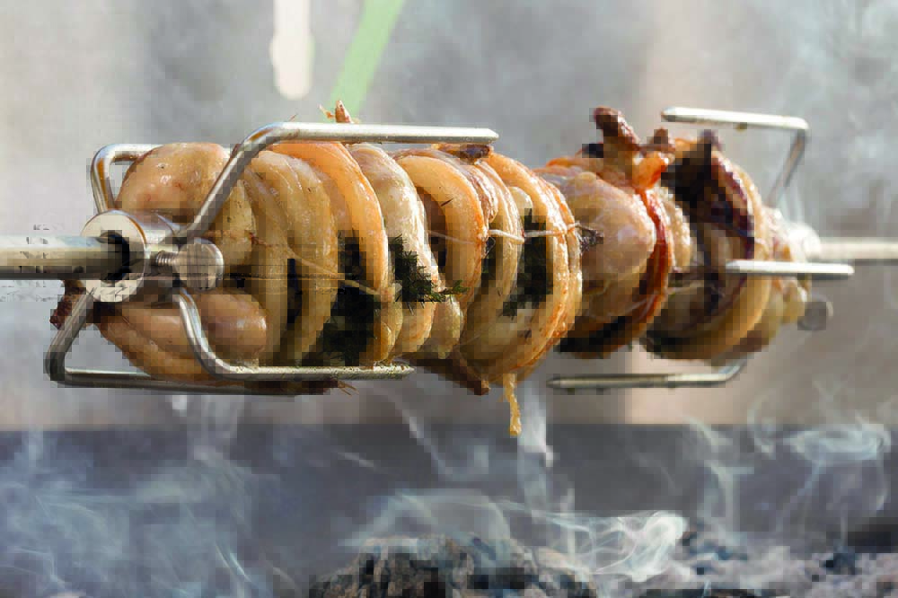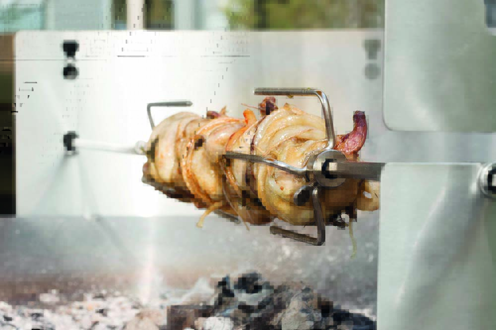 Am drehenden Spiess umfliessen die Säfte und das Fett das Grillgut. Dadurch bleibt es saftig und wird schön kross gegart.