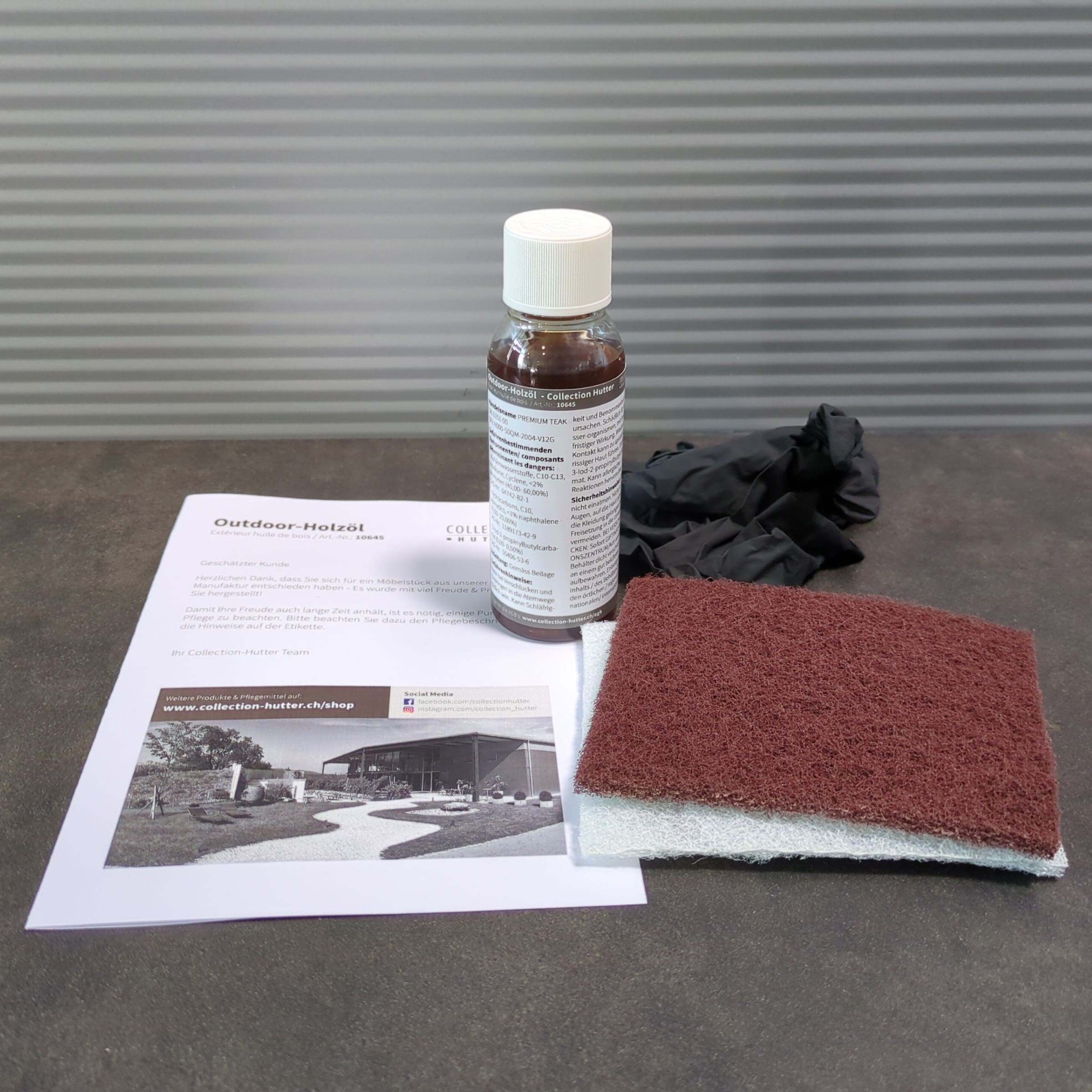 Das Holz muss regelmässig mit Holz-Öl behandelt werden. Achtung: Verwenden Sie keine Mikrofasertücher zur Reinigung von Holztischen, da dies zur schnelleren Austrocknung führen kann.