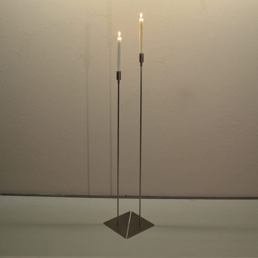 Die 2 grössten Kerzenständer FILIGRANO sind im Set perfekt kombiniert und machen aus den Dreieckfüssen einen Quadratfuss.