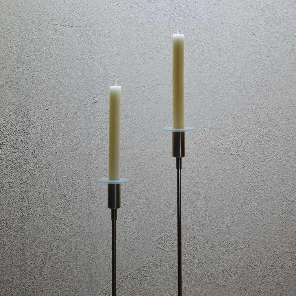 2er Set FILIGRANO klein, in Edelstahl und 75 und 85cm hoch – optional mit satinierten Glastropfschützen.
