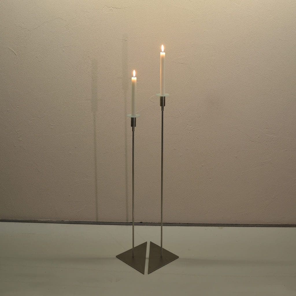 Die 2 kleinsten Kerzenständer FILIGRANO sind im Set perfekt kombiniert und machen aus den Dreieckfüssen einen Quadratfuss.