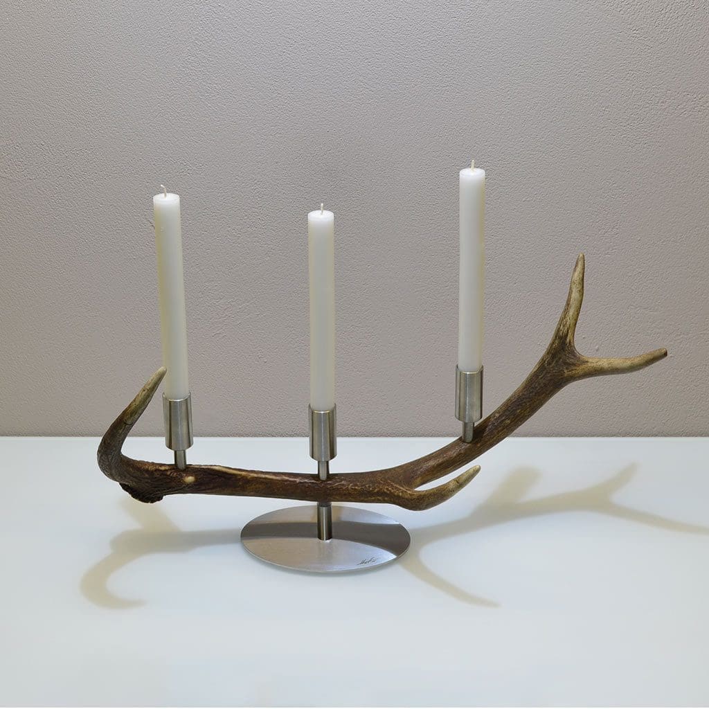 Die Geweihstangen sind vorwiegend aus Abwurf und jeder Kerzenständer Hirsch ist ein einzigartiges Unikat. Die Kerzentulpen werden bei uns vor Ort für jedes Geweih angepasst. Ein Naturprodukt gepaart mit edlem Design.