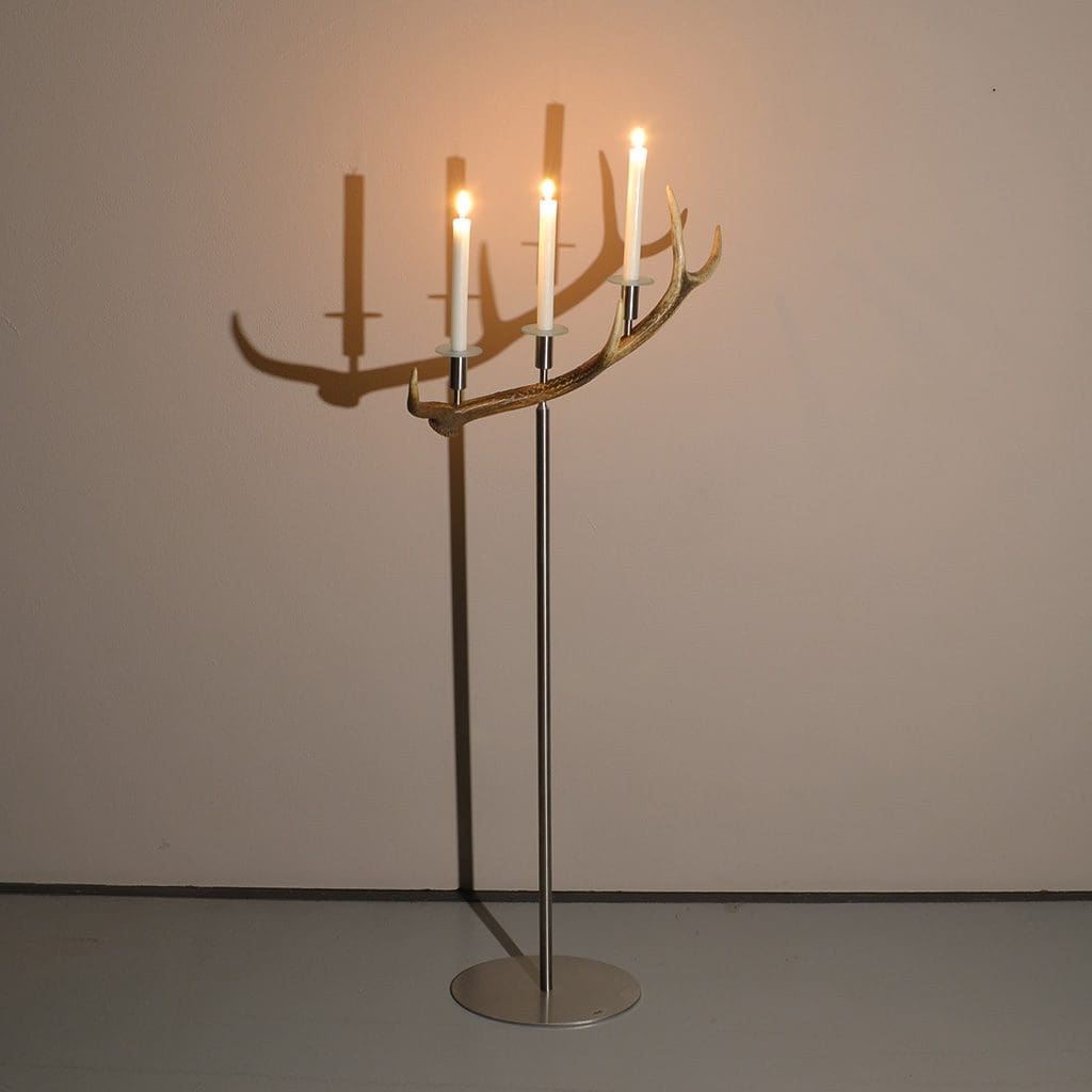 Die Geweihstangen sind vorwiegend aus Abwurf und jeder Kerzenständer «Hirsch» ist ein einzigartiges Unikat. Die Kerzentulpen und die Geweihlage werden bei uns vor Ort für jedes einzelne Geweih angepasst. Ein Naturprodukt gepaart mit edlem Design.