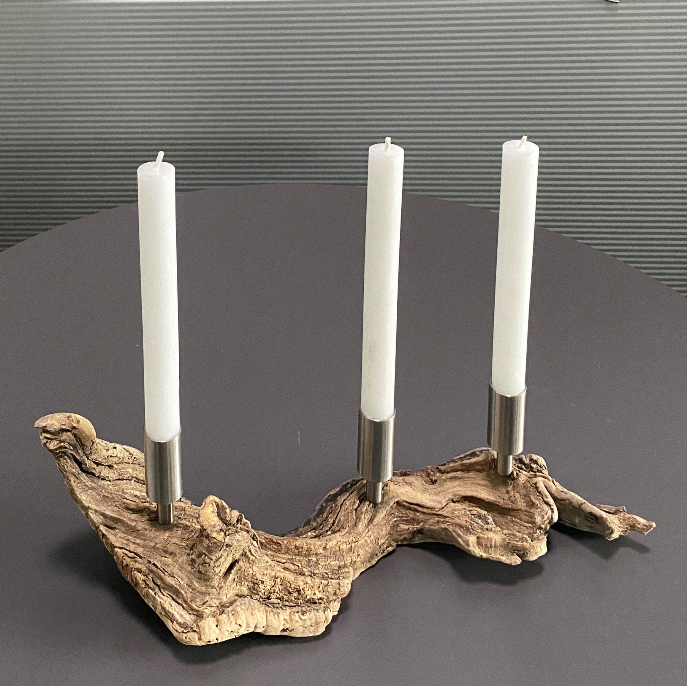 Die Schwemmhölzer aus der Toscana sind wie kleine Kunstwerke und werden bei uns vor Ort mit Kerzentulpen oder Platten in einzigartige Kerzenständer verwandelt. Ein Naturprodukt gepaart mit edlem Design.