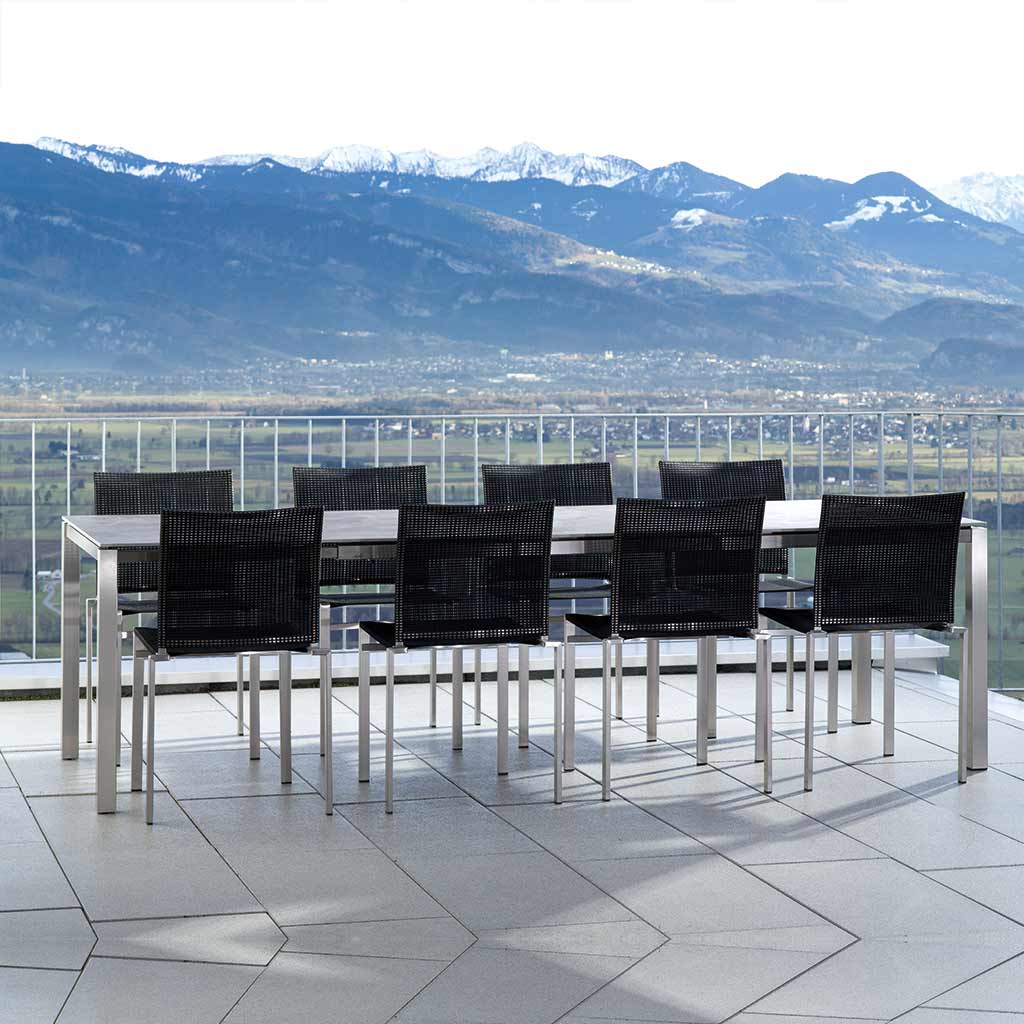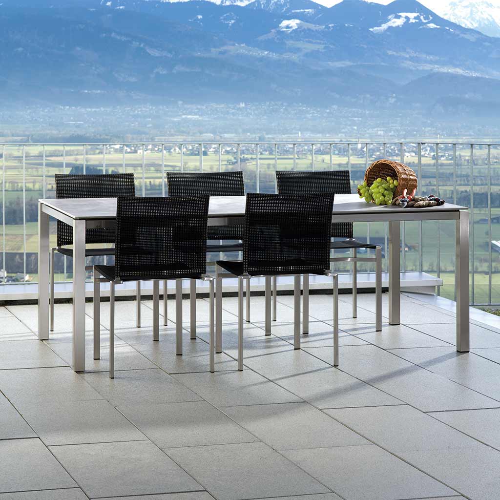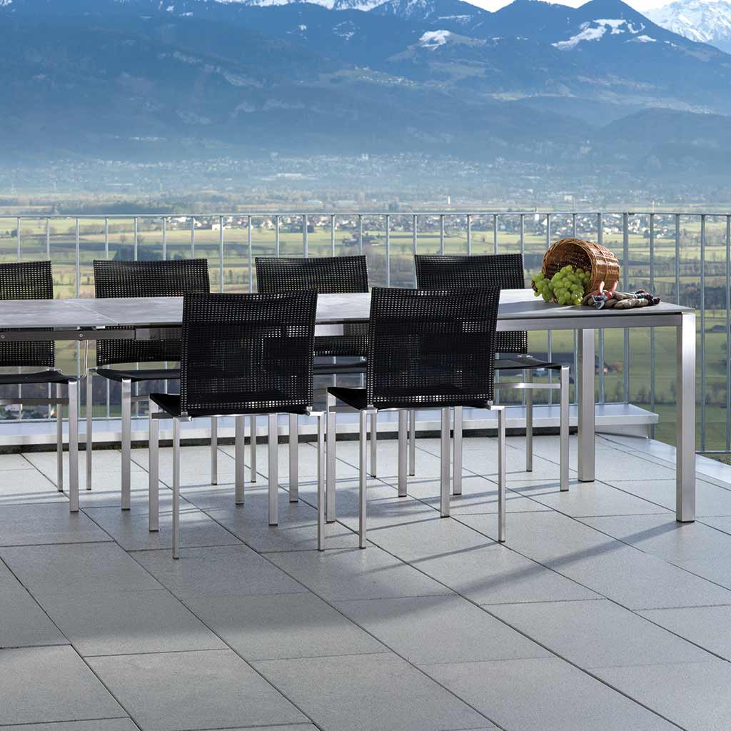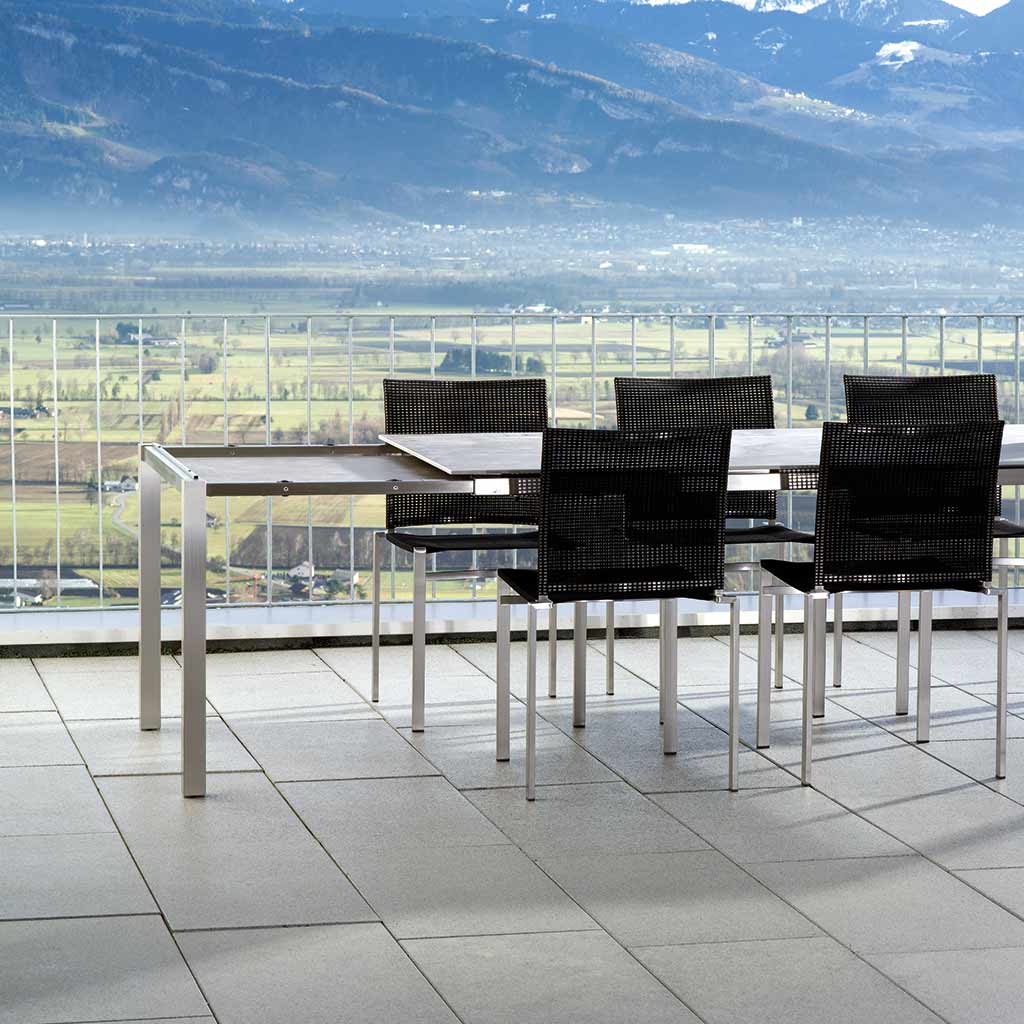 Dieser Tisch steht für absolute Härte und Langlebigkeit. Die hervorragenden Eigenschaften von Keramik sind geradezu prädestiniert für Tischplatten im Innen- und Aussenbereich. Säurefest, pflegeleicht, fleckenunempfindlich und wetterfest sind die wichtigsten Attribute, die SERAMIK mit Leichtigkeit erfüllt.